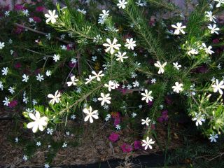 The photos above aren't mine, but these are. In our back yard we have a bridal star bush which is currently flowering. I really like this plant, possibly because it just keeps growing without any demands for attention and then rewards you with a reasonably long flowering time.