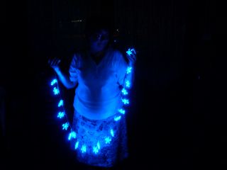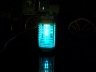 Margaret and Grant were playing with some new "glow in the dark" toys last night. Grant's new bug zapper seemed particularly effective. He found a blow fly to zap, but the fly was not at all attracted to the light and just crawled happily around the outside.