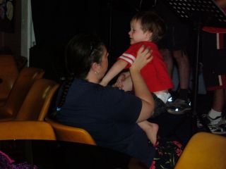 Alex was a bit of a handful in church today- either cute or naughty depending on your point of view! At one stage he jumped up on stage with a toy guitar to help the musos. Unfortunately my camera thought it was having battery issues at the time, so I missed it. Here are a couple of highlights from this morning's service.