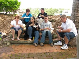 Here is a very orderly group of lunchers. Back row: Margaret Bates, Maurie O'Connell (Queanbeyan, NSW).