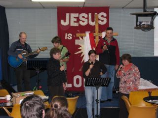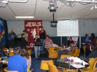 I rarely take photos in church as I'm usually focused on other things, like listening to God. This morning I found my camera sitting on the sound desk, so I took the opportunity to take a couple of shots during the last song. They give a sense of the informal (some say chaotic) atmosphere of our church.