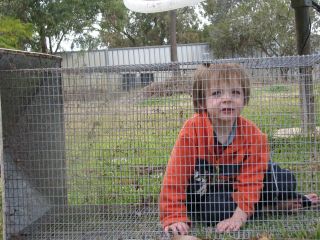 Alex decided that he should climb into a bird cage. It was all his idea. On Monday we found in our car park a galah that seemed very tame and comfortable with people. We put it in the cage thinking it was a pet that had escaped. It died over night, and had probably been very sick at the time we found it.