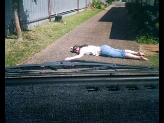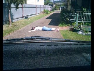 Susannah came up to Grandma's on the train yesterday morning. She decided to prevent us leaving by lying down across the driveway in front of the car. She wasn't too committed to the project, and possibly the driveway was too hot to stay there for long.