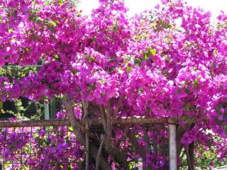The bougainvilleas next door to the church are starting to recover from the frosts: