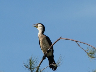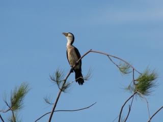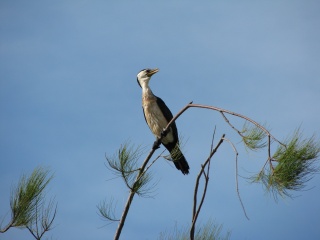 I held off posting these before as I had no clue about what the birs is. Local ornithologist Michael Dahlem tells me that it is a Little Pied Cormorant.