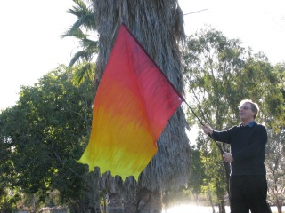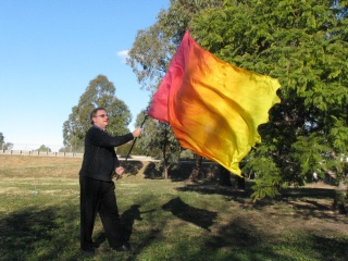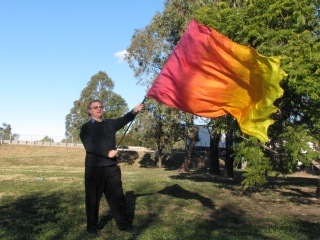 I had Josh take a few photos of me with a banner this afternoon. This particular flag represents the Holy Fire of God. For information on the symbolism of the colours on this particular banner click here