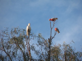 The galahs were in the old gum tree across the creek, but they were joined by a huge flock of cockatoos.
