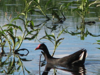 The fellows below as called Eurasian Coots. I thought there were young purple moorhens because they look similar except for the beak which is white instead of red, and there are moorhens around.