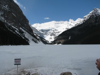 Yesterday ended up being a very long day, but quite relaxing. We again went to the high altitude of the Rocky Mountains visiting Lake Louise which is normally ice-free this time of year, but is completely frozen over still.