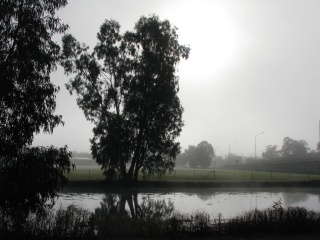 This morning was bitterly cold (-1 deg C) and foggy. Fog is reasonably uncommon in Narrabri and normally I do get excited about the opportunity to get out and about, but this morning was just too cold. I did drag myself out just before the fog lifted. The good thing about fog is that it offers a different perspective on the landscape- everything is softened by the low light, bright colours are accentuated and the fog removes a lot of the background clutter allowing the eye to focus on the foreground objects.