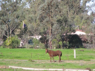 To avoid the magpie swooping problem I went for a walk devoid of trees today, down the Old Turrawan Road. In the distance I saw a horse who might not be exactly disappointed but certainly somewhat perturbed.