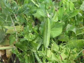 The peas are going on longer than normal, possibly because of the cool spring. This year I planted a dwarf variety and was quite happy to see that the yield is pretty much the same as I normally get from the sort that need to be staked up. There are flowers coming again so there may yet be more peas in a few weeks.