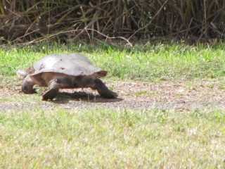 This morning I was planting sweet peas at the back fence of our house when I turned around and saw this tortoise.