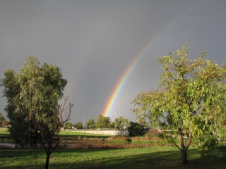 Rainbows! September 9, 2011November 1, 2013 / newlifenarrabri Beautiful soaking rain overnight and through the day gave us a much needed 35 mm. THe garden looks refreshed and the creek is up to a more normal level. And at the end of the rain, came a beautiful double rainbow. God's promise of life! Share this: Share on X (Opens in new window) X Share on Facebook (Opens in new window) Facebook More Print (Opens in new window) Print Share on Reddit (Opens in new window) Reddit Email a link to a friend (Opens in new window) Email Like Loading... Related