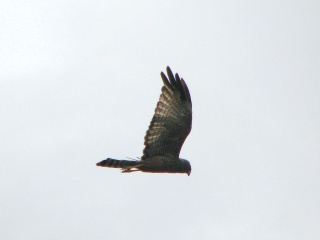 I don't know if it was the overcast weather causing this hawk to fly lower than normal to spot its prey, or if was just in the right place at the right time.