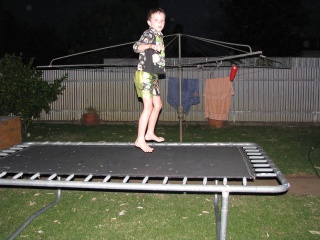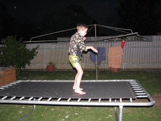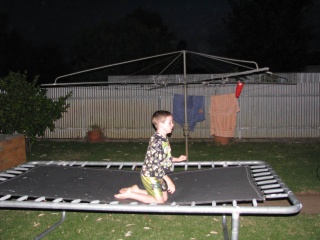 Alex insisted that I watch him jump on the trampoline so I took advantage of the opportunity to take a few shots. It was nearly dark so the flash was required.