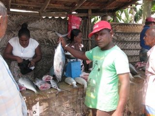 A fisherman calling himself Marcus came and chatted to us. He was very friendly, telling us about his catch the night before. He showed us the local beach-side fish market. Then he invited us to come and visit his house. I declined but he was quite insistent, so we followed him home.