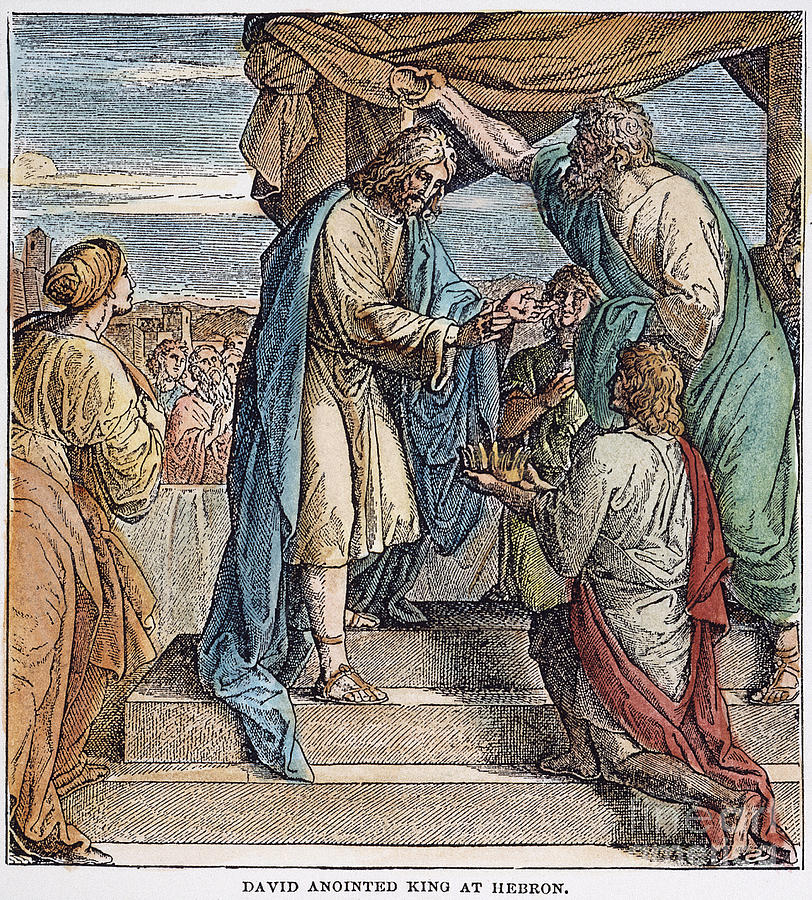 Samuel anoints David with oil, and from that say on David walks in the power of the Holy Spirit.