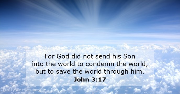 God loved the world so much that He sent His one and only Son so that everyone who believes in Him shall not perish but have eternal life. Jesus came into the world to save us not to judge us.
