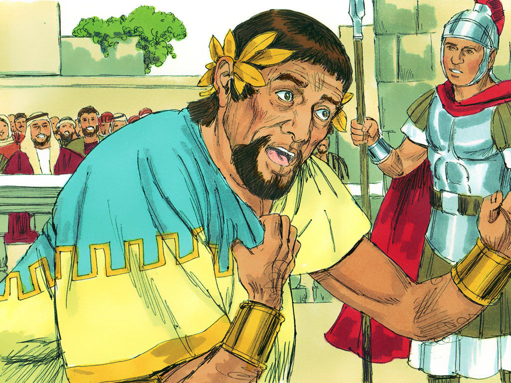 The people of Tyre and Sidon send a delegation to make peace with Herod. Herod makes a fine speech which the people present proclaim to be the speech of a god not a man. Because Herod accepts this false worship, the Lord strikes him down with sickness, and he dies.