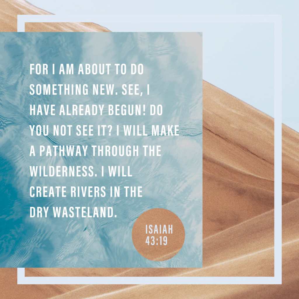 I am creating something new. There it is! Do you see it? I have put roads in deserts, streams in thirsty lands. Isaiah 43:19 CEV https://bible.com/verse-of-the-day/isa.43.19/31340
