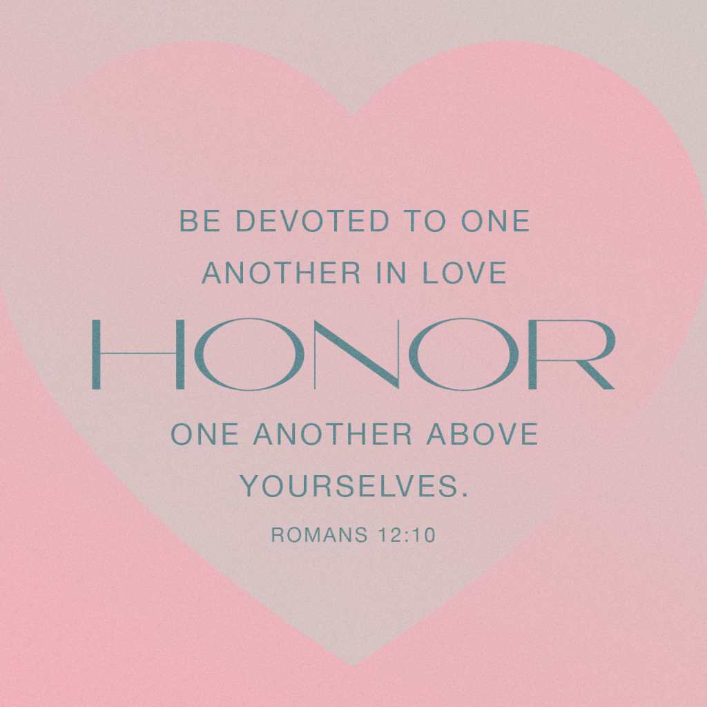 Love each other as brothers and sisters and honor others more than you do yourself. Romans 12:10 CEV https://bible.com/bible/392/rom.12.10.CEV