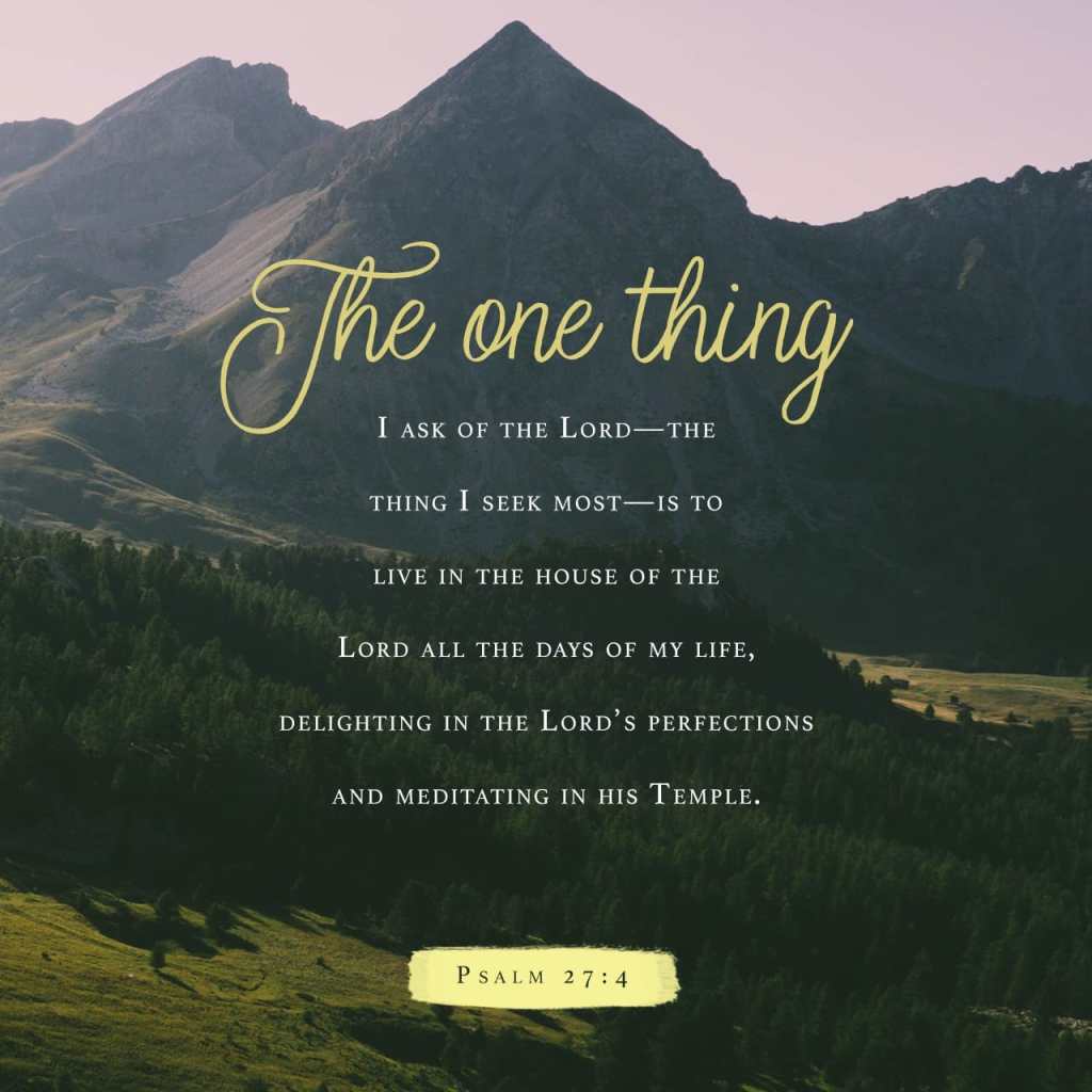 I ask only one thing, Lord : Let me live in your house every day of my life to see how wonderful you are and to pray in your temple. Psalms 27:4 CEV https://bible.com/verse-of-the-day/psa.27.4/9141
