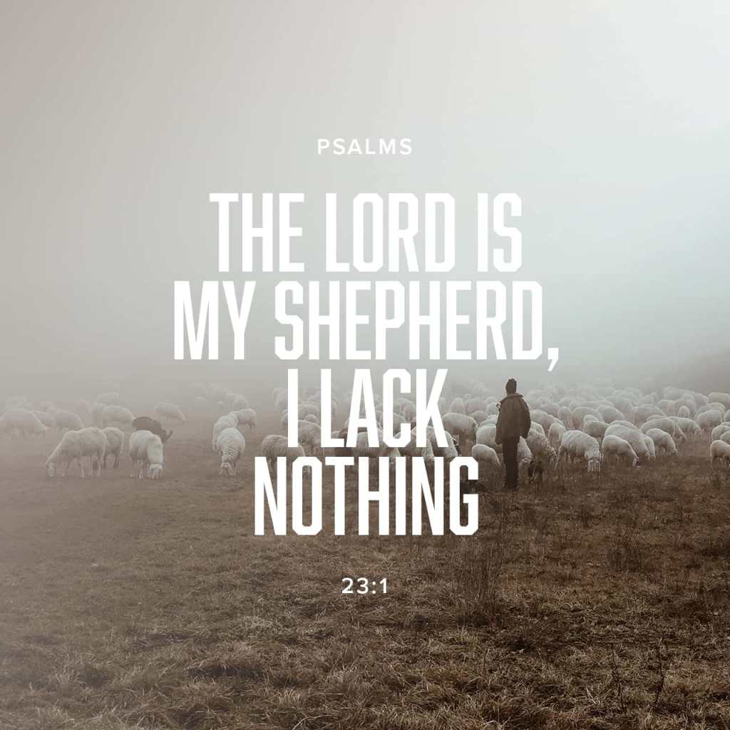 The Lord is my shepherd, I lack nothing. He makes me lie down in green pastures, he leads me beside quiet waters, Psalms 23:1-2 NIVUK https://bible.com/bible/113/psa.23.1-2.NIVUK