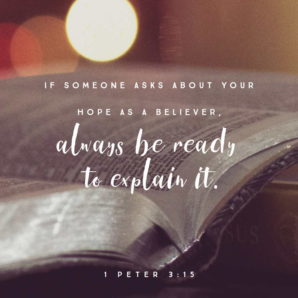 Honor Christ and let him be the Lord of your life. Always be ready to give an answer when someone asks you about your hope. 1 Peter 3:15 CEV https://bible.com/bible/392/1pe.3.15.CEV