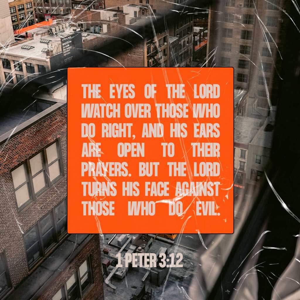 The Lord watches over everyone who obeys him, and he listens to their prayers. But he opposes everyone who does evil.” 1 Peter 3:12 CEV https://bible.com/bible/392/1pe.3.12.CEV