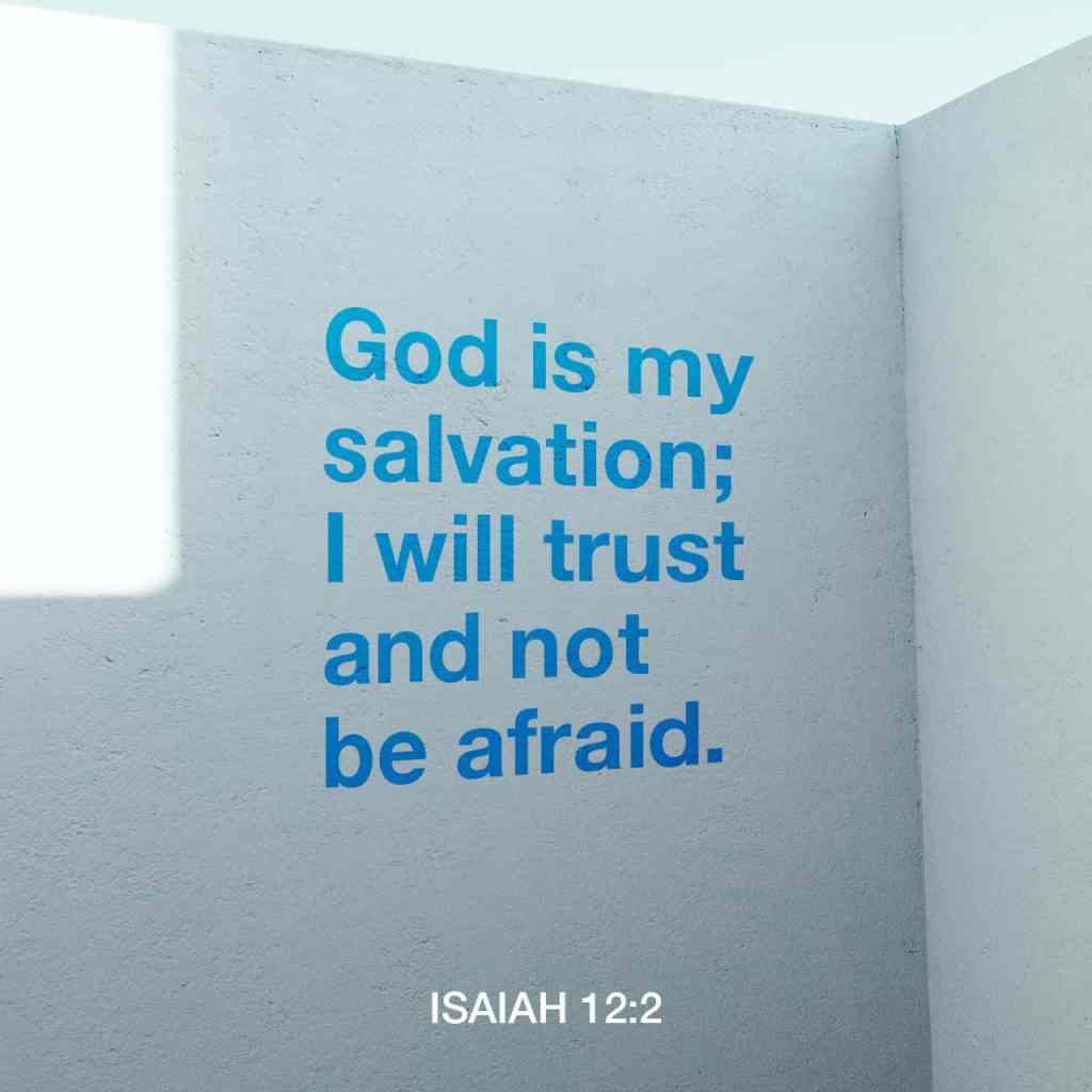 2 I trust you to save me, Lord God, and I won’t be afraid. My power and my strength come from you, and you have saved me.” Isaiah 12:2 CEV https://bible.com/bible/392/isa.12.2.CEV