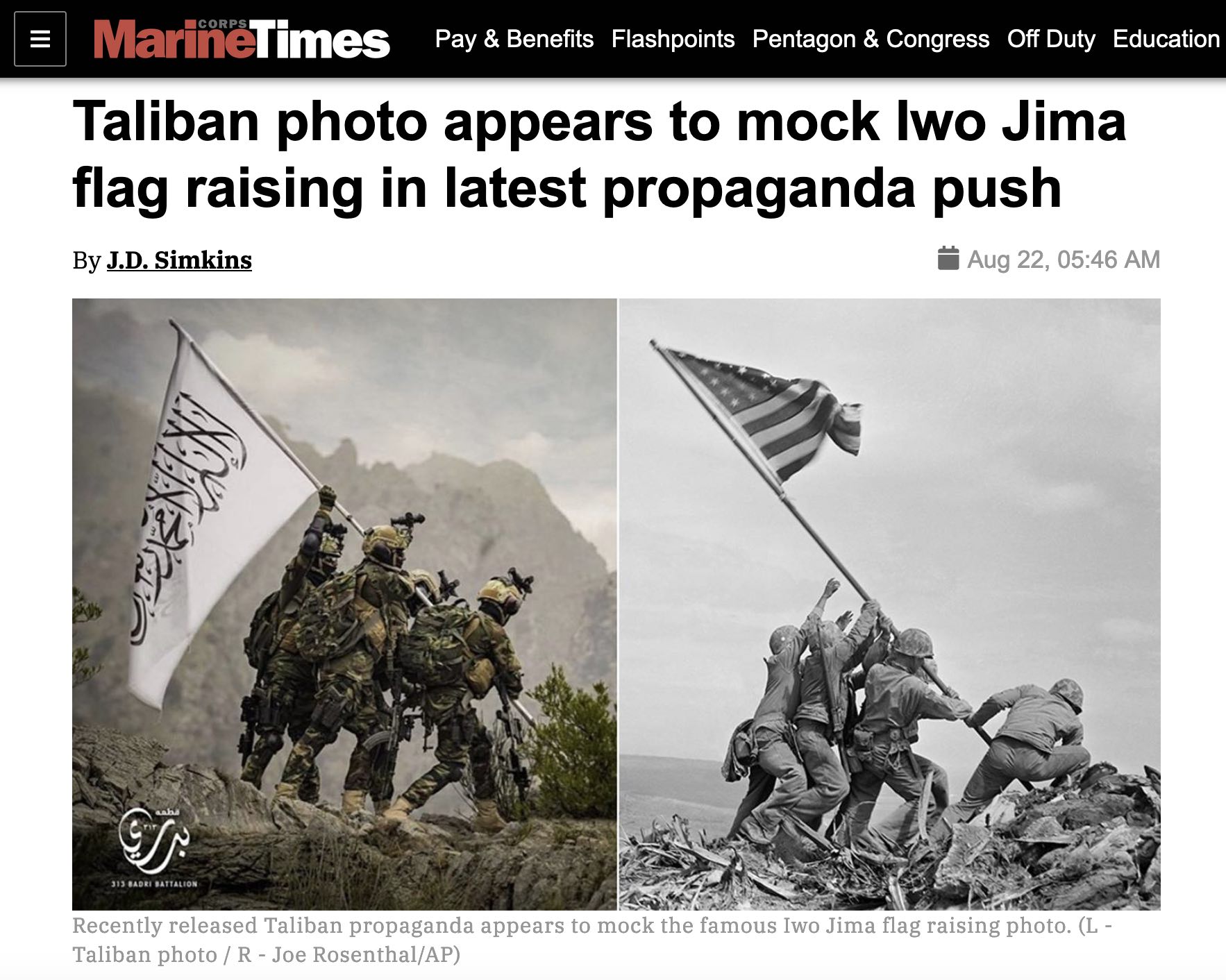 Taliban in gear Biden abandoned taking the piss out of the sacred US Marine Corps image of the US flag being raised over Iwo Jima.