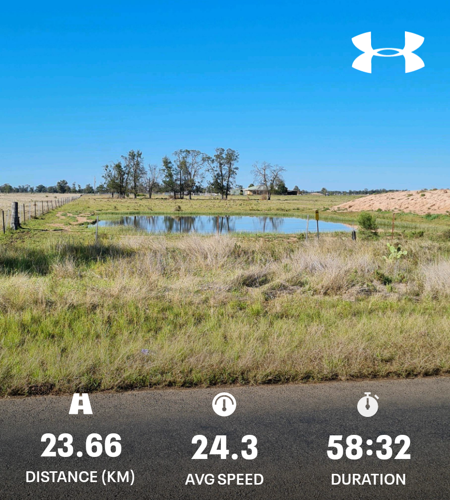 A beautiful morning for riding along Yarrie Lake Rd. Slight breeze, sun is shining. It’s great to see all the farm dams full and the lush green pastures.