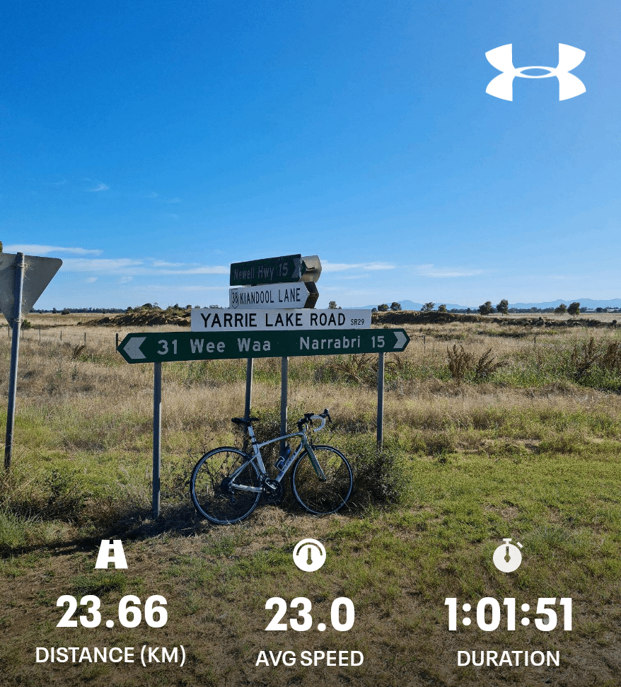 Today’s Bike Ride December 14, 2022 / newlifenarrabri Great #bike ride along Yarrie Lake Rd this morning. The weather is more spring than summer at the moment, loving it! #cycling #Narrabri Share this: Click to share on X (Opens in new window) X Click to share on Facebook (Opens in new window) Facebook More Click to print (Opens in new window) Print Click to share on Reddit (Opens in new window) Reddit Click to email a link to a friend (Opens in new window) Email Like Loading... Related