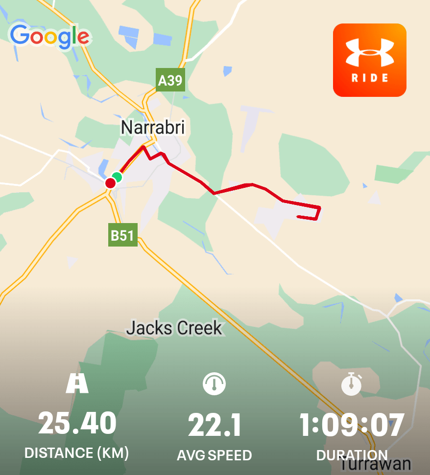 A nice ride this morning. The edge has gone off the heat, so very pleasant. A highlight was a very close encounter with a peewee flying across the road – he misjudged the trajectory and came within cms of hitting my face 🦅🚲😁