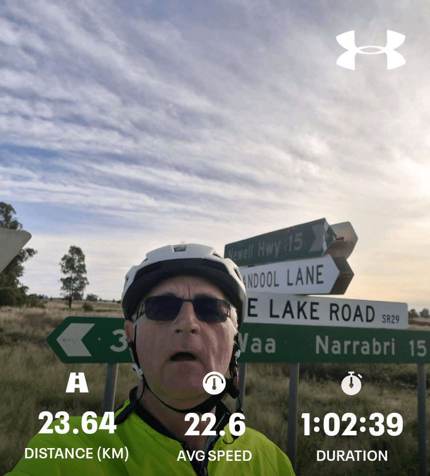 Today’s Bike Ride March 31, 2023 / newlifenarrabri It got down to 10 degrees this morning, a big drop from last week. For the first time in the year I had to wear a nylon jacket for extra warmth. A nice ride along Yarrie Lake Rd. #cycling #Narrabri Share this: Click to share on X (Opens in new window) X Click to share on Facebook (Opens in new window) Facebook More Click to print (Opens in new window) Print Click to share on Reddit (Opens in new window) Reddit Click to email a link to a friend (Opens in new window) Email Like Loading... Related