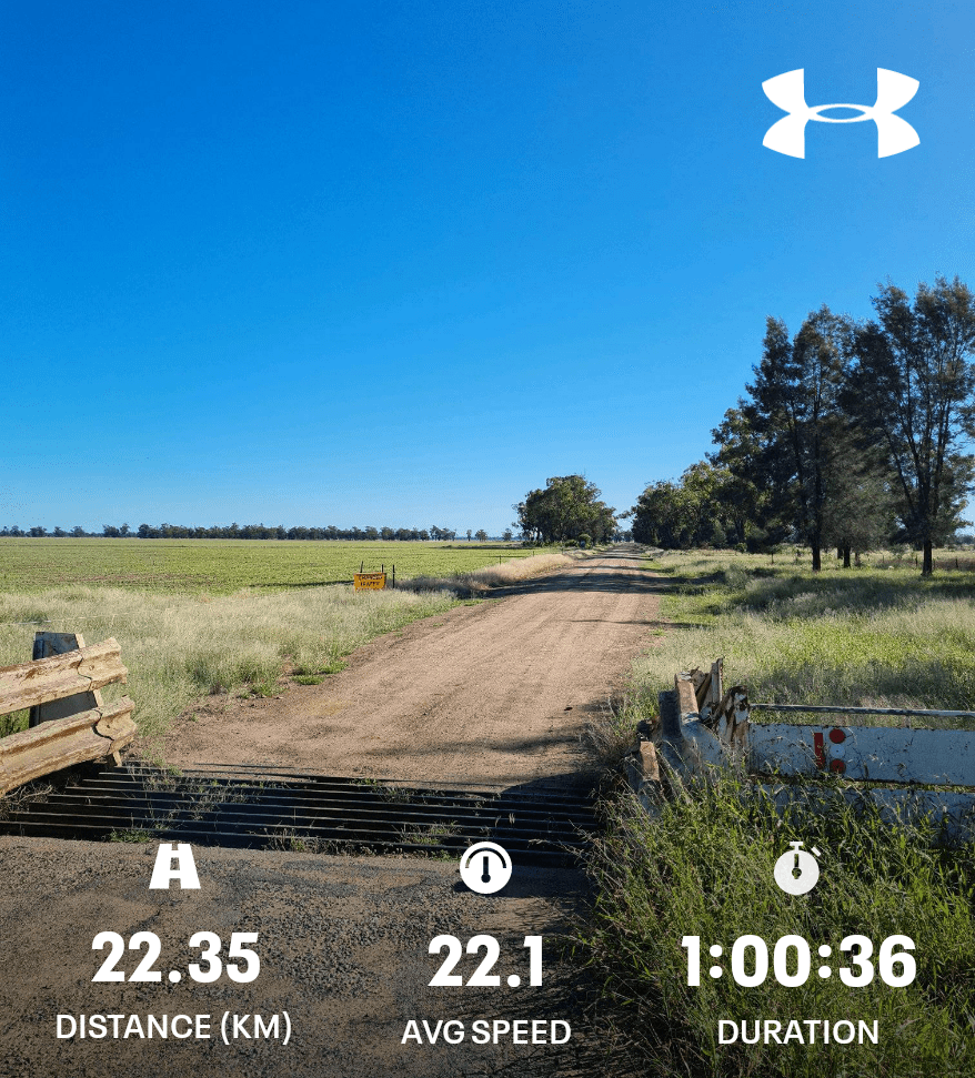 I was run off the road this morning by a B-Double truck who thought I was invisible. Apart from that it was a good ride. #cycling #Narrabri