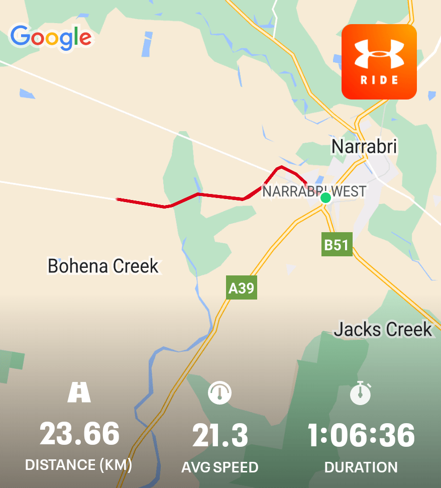 A nice ride along Yarrie Lake Rd this morning although it was breezy at times. The rain is coming over later this morning, so it was good to get a ride in.