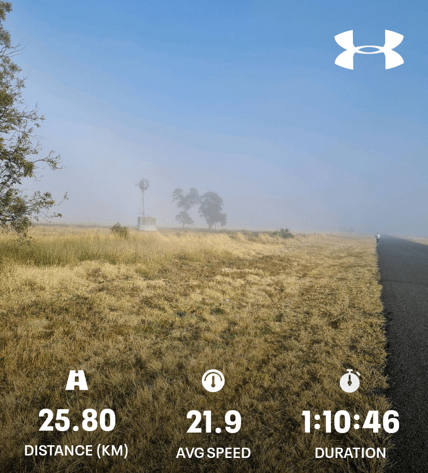 Today’s Bike Ride June 14, 2023 / newlifenarrabri Thick fog this morning. A cold and damp ride to Haire Drive π #cycling #Narrabri Share this: Share on X (Opens in new window) X Share on Facebook (Opens in new window) Facebook More Print (Opens in new window) Print Share on Reddit (Opens in new window) Reddit Email a link to a friend (Opens in new window) Email Like Loading... Related