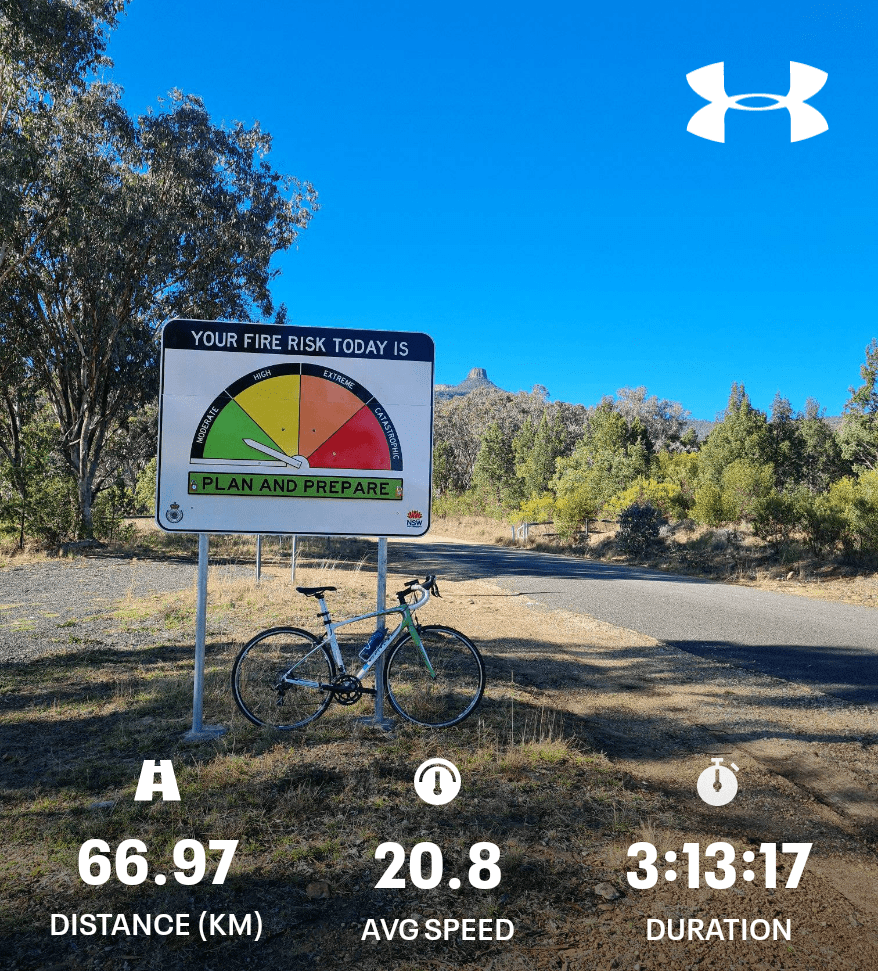 Today’s Bike Ride June 17, 2023 / newlifenarrabri Another day in Paradise, if you like a bit of frost first up. Rode up to the entrance of the Mount Kaputar National Park about 67 km round trip. #cycling #Narrabri Share this: Click to share on X (Opens in new window) X Click to share on Facebook (Opens in new window) Facebook More Click to print (Opens in new window) Print Click to share on Reddit (Opens in new window) Reddit Click to email a link to a friend (Opens in new window) Email Like Loading... Related
