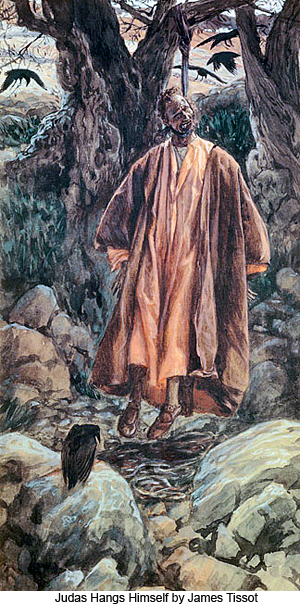 Judas throws the coins down in the temple and goes out and hangs himself. The priests pick up the coins, and they decide to buy a Potter’s field to use as a cemetery. This fulfils the prophecy in Zachariah 11:12-13.