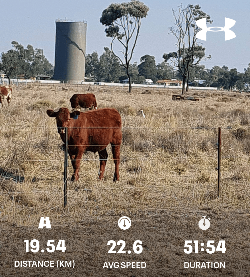 A quick ride around town this morning, what I call the Bunnings ride – along the highway to Bunnings, then around the edge of town, back to Violet Street and then around the Riverbend Estate. It always surprises me that agriculture continues right up to the edge of suburbia. #cycling #Narrabri #Biketooter