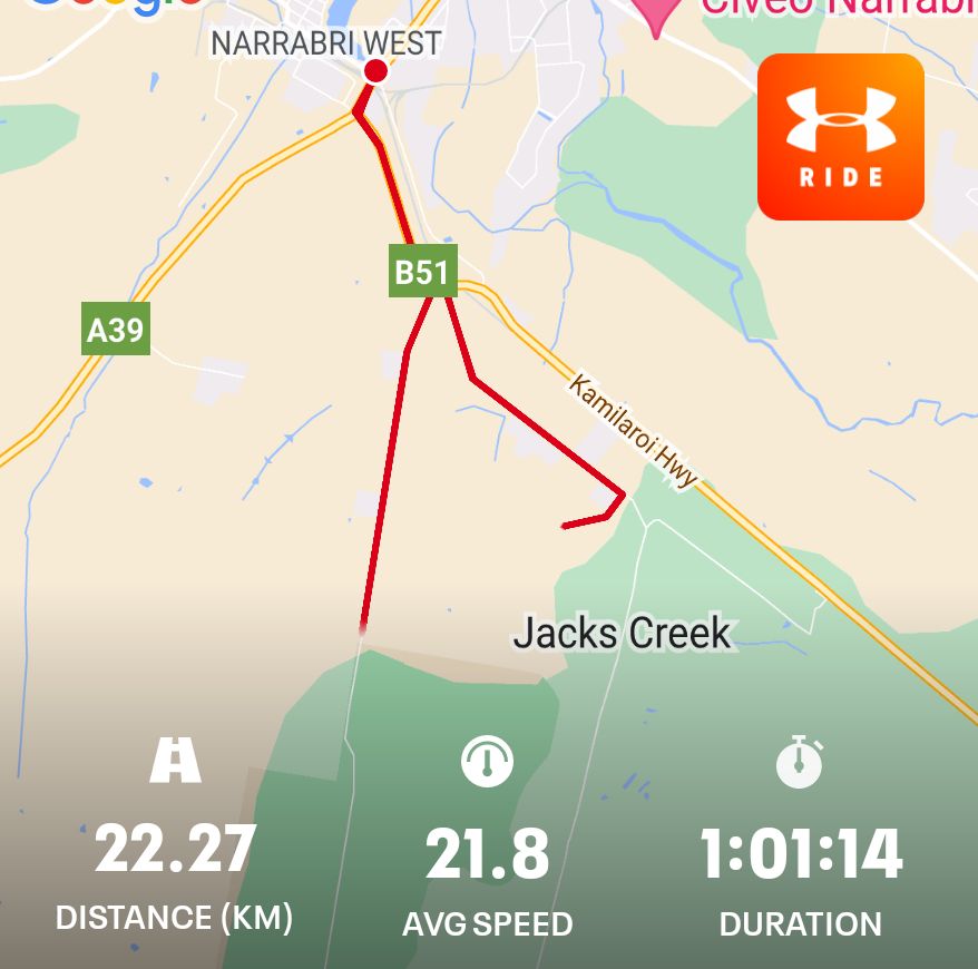 Nice to get out on the bike again after a few days off. I rode to Jacks Creek and Gun Club Roads #cycling #Narrabri #Biketooter