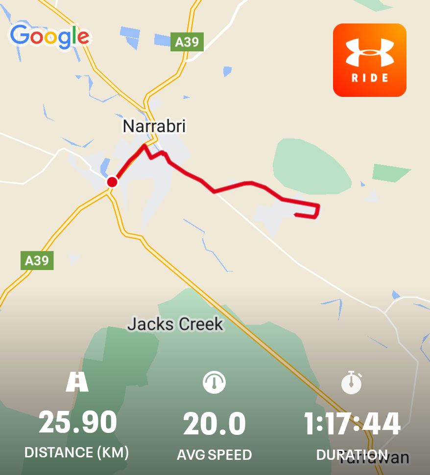 A bit milder this morning but the breeze made riding a little harder. Nice trip to the end of Haire Drive #cycling #Narrabri #Biketooter