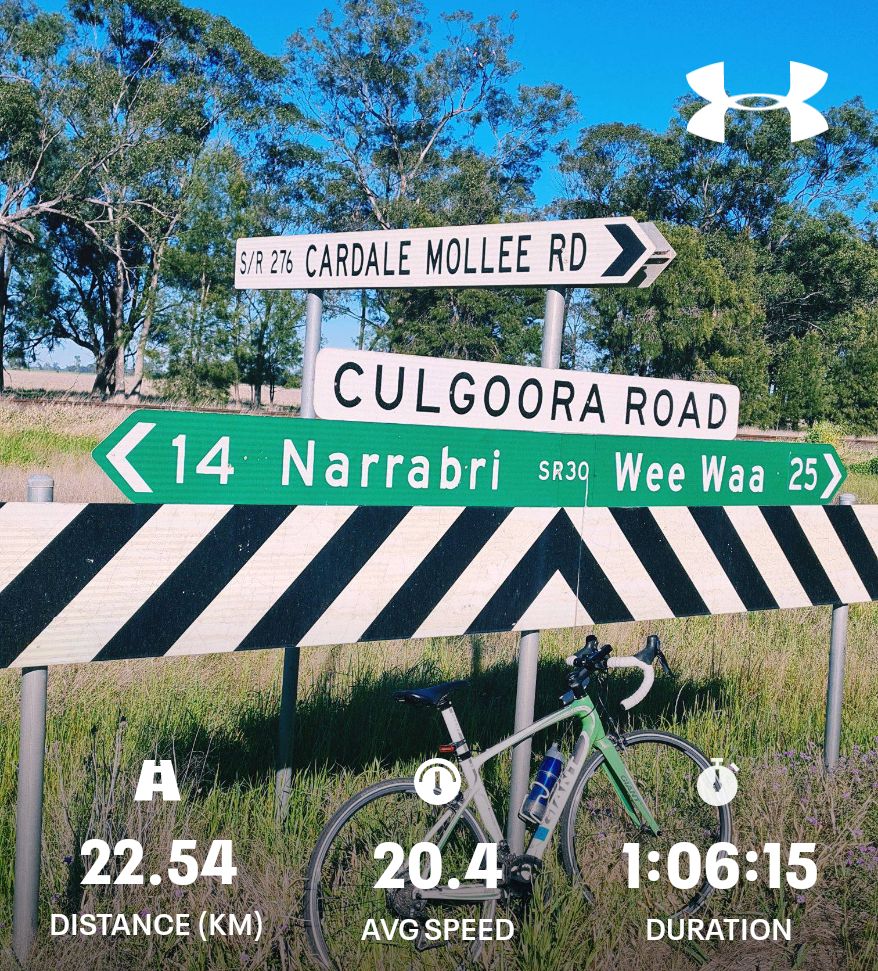 Today’s Bike Ride August 27, 2024 / newlifenarrabri Nice ride along Culgoora Road this morning. #cycling #narrabri #Biketooter Share this: Click to share on X (Opens in new window) X Click to share on Facebook (Opens in new window) Facebook More Click to print (Opens in new window) Print Click to share on Reddit (Opens in new window) Reddit Click to email a link to a friend (Opens in new window) Email Like Loading... Related