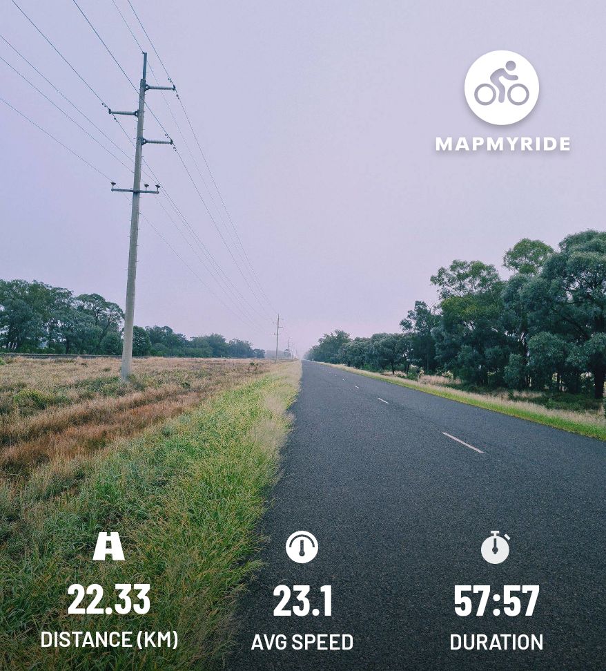 A foggy start this morning after yesterday’s rain. I pushed myself a bit harder than usual and resulted in a good average speed. #Narrabri #Biketooter #cycling