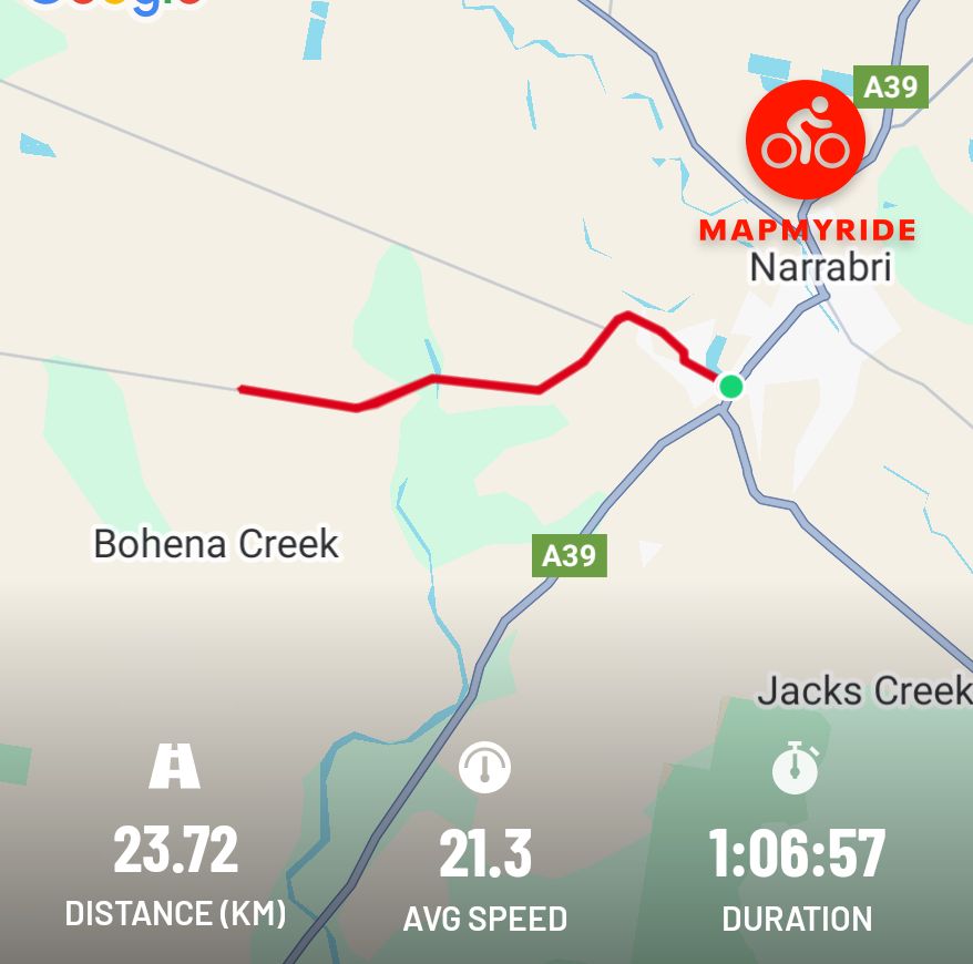 Today’s Bike Ride April 10, 2025 / newlifenarrabri A bit cloudy this morning but not too windy. I rode along Yarrie Lake Rd. #cycling #Narrabri #Biketooter Share this: Click to share on X (Opens in new window) X Click to share on Facebook (Opens in new window) Facebook More Click to print (Opens in new window) Print Click to share on Reddit (Opens in new window) Reddit Click to email a link to a friend (Opens in new window) Email Like Loading... Related