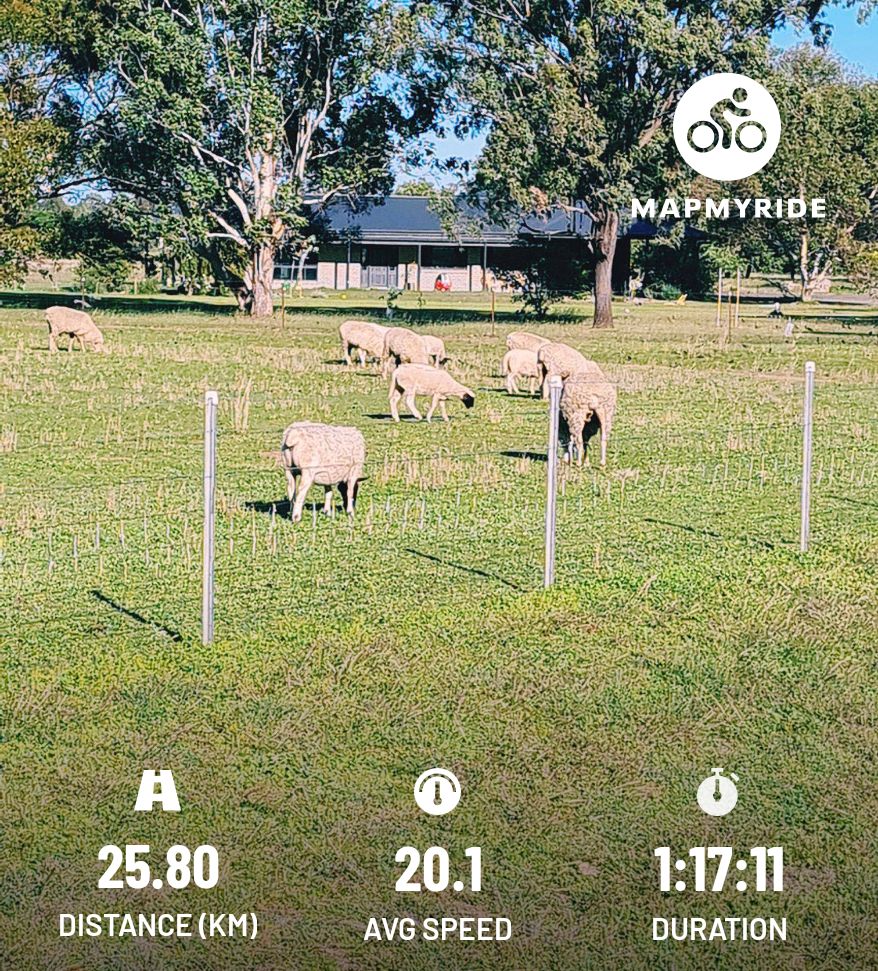 Today’s Bike Ride May 9, 2025 / newlifenarrabri The sheep at the end of Haire Drive look happy today. #cycling #Narrabri #Biketooter Share this: Click to share on X (Opens in new window) X Click to share on Facebook (Opens in new window) Facebook More Click to print (Opens in new window) Print Click to share on Reddit (Opens in new window) Reddit Click to email a link to a friend (Opens in new window) Email Like Loading... Related