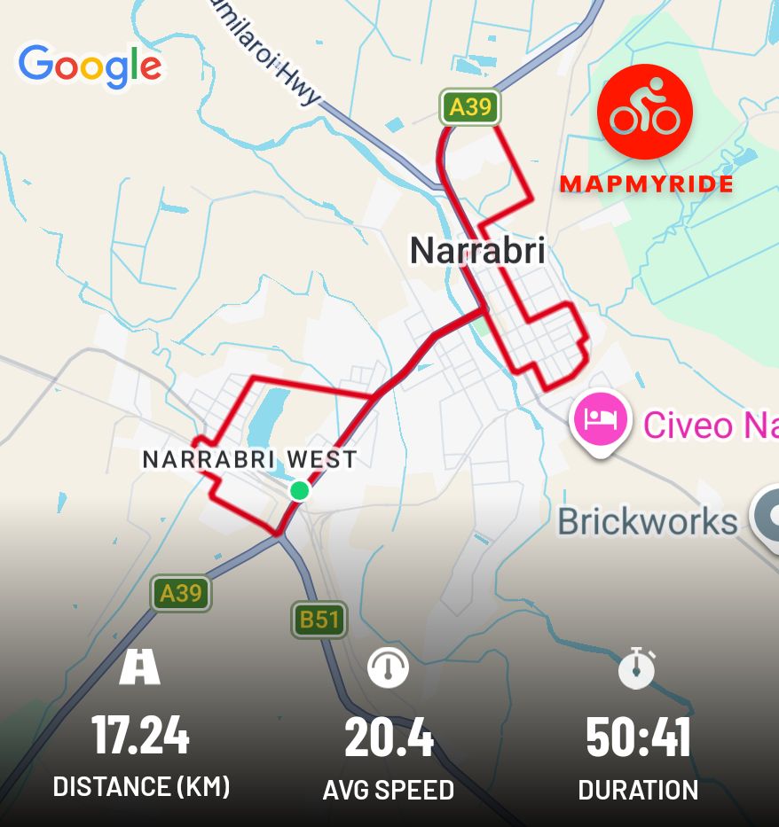 A beautiful morning in Narrabri today. A short ride because of a few commitments. I rode to Bunnings then around the edge of town and then up Ugoa St past the lake and to Railway St before coming home. #cycling #Narrabri