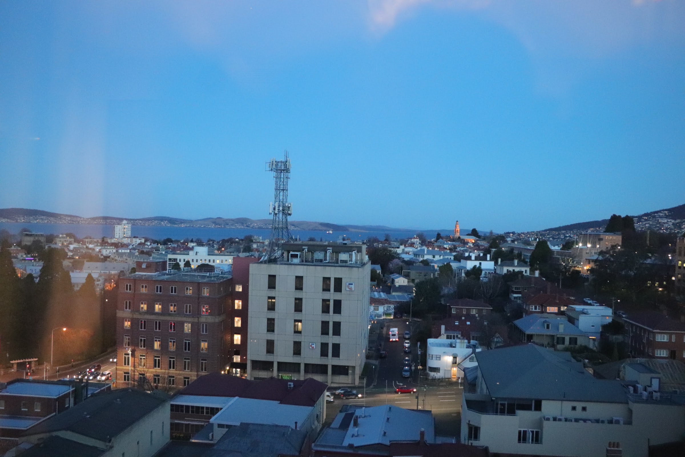 Now we are at the Ibis Styles Hotel in the centre of Hobart. We have great views from the room, which by itself is tiny.